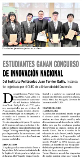 La Prensa | Estudiantes de Liceo TP de Curicó ganan concurso de innovación nacional