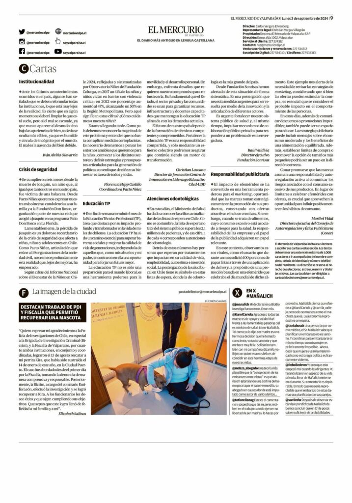 El Mercurio de Valparaíso | Carta al director de Christian Lazcano: Educación TP